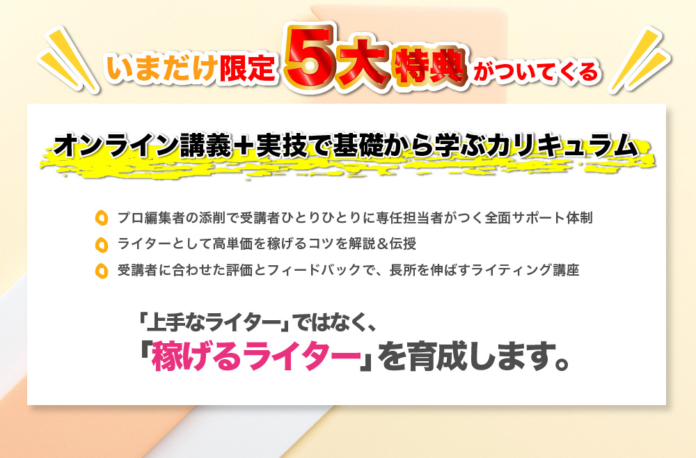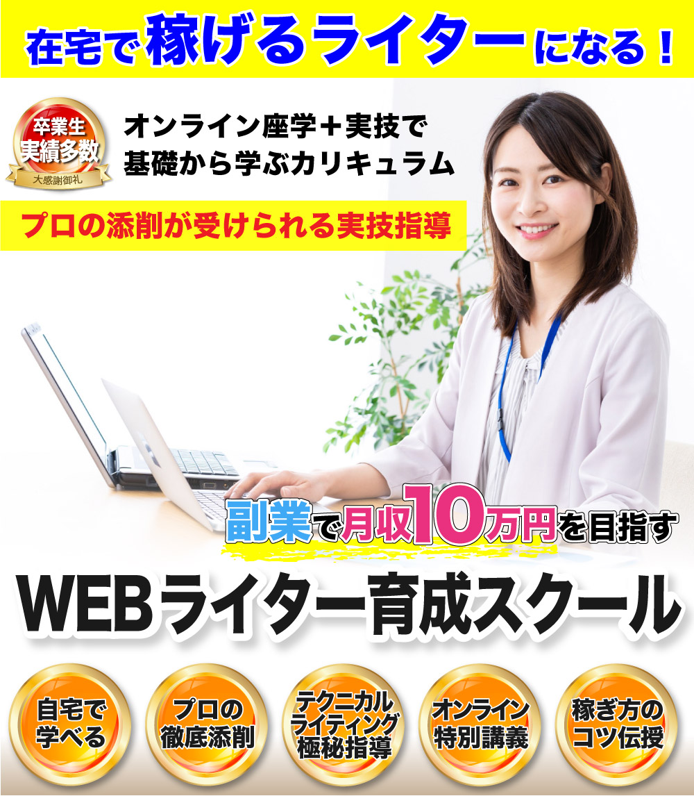 当スクールでは、書けるようになることだけではなく「稼げるライターになる」ということを目指して講義を行っています。