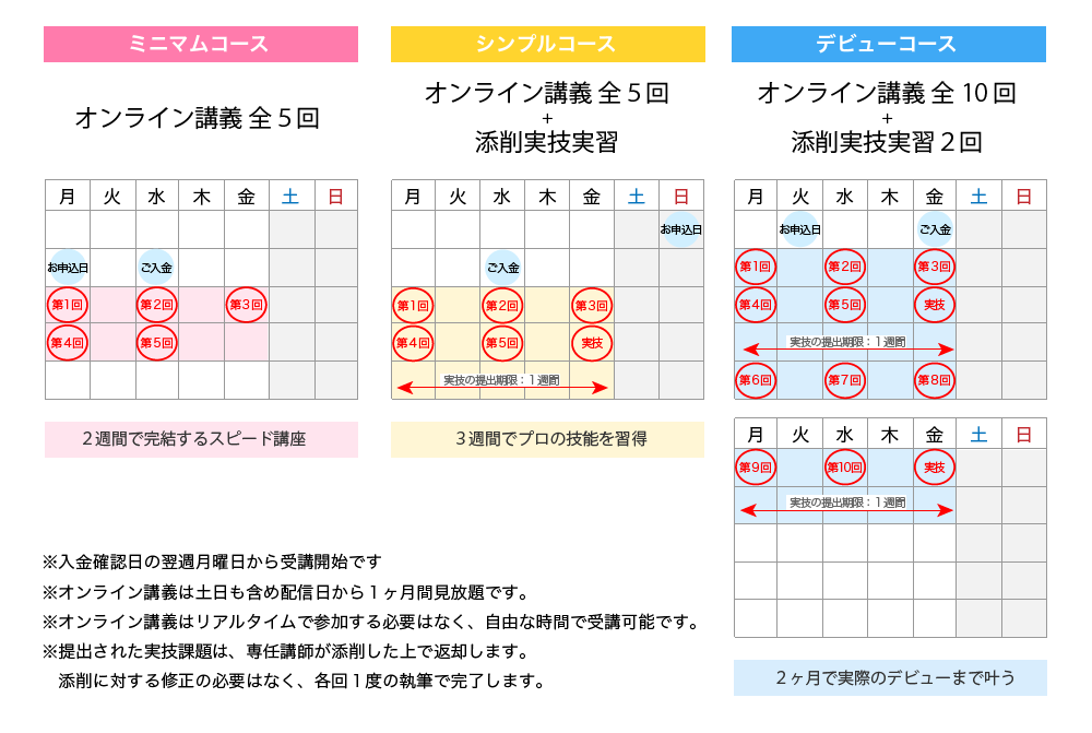 ※実技課題とは、シンプルコース・デビューサポートコースに含まれている添削課題のことを指します。